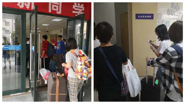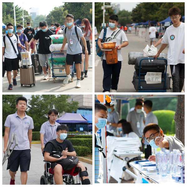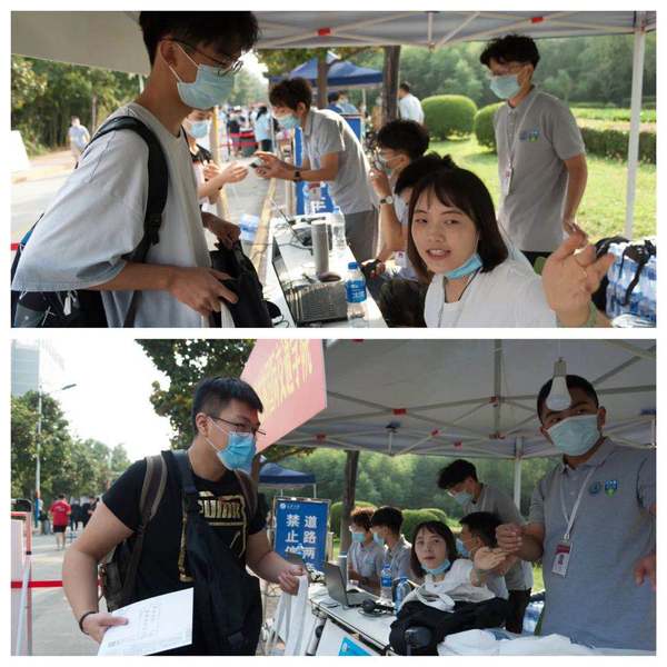 Volunteers welcomed new students and helped themtofind their corresponding dormitory, carryyed their luggage, and registered their accommodation information.