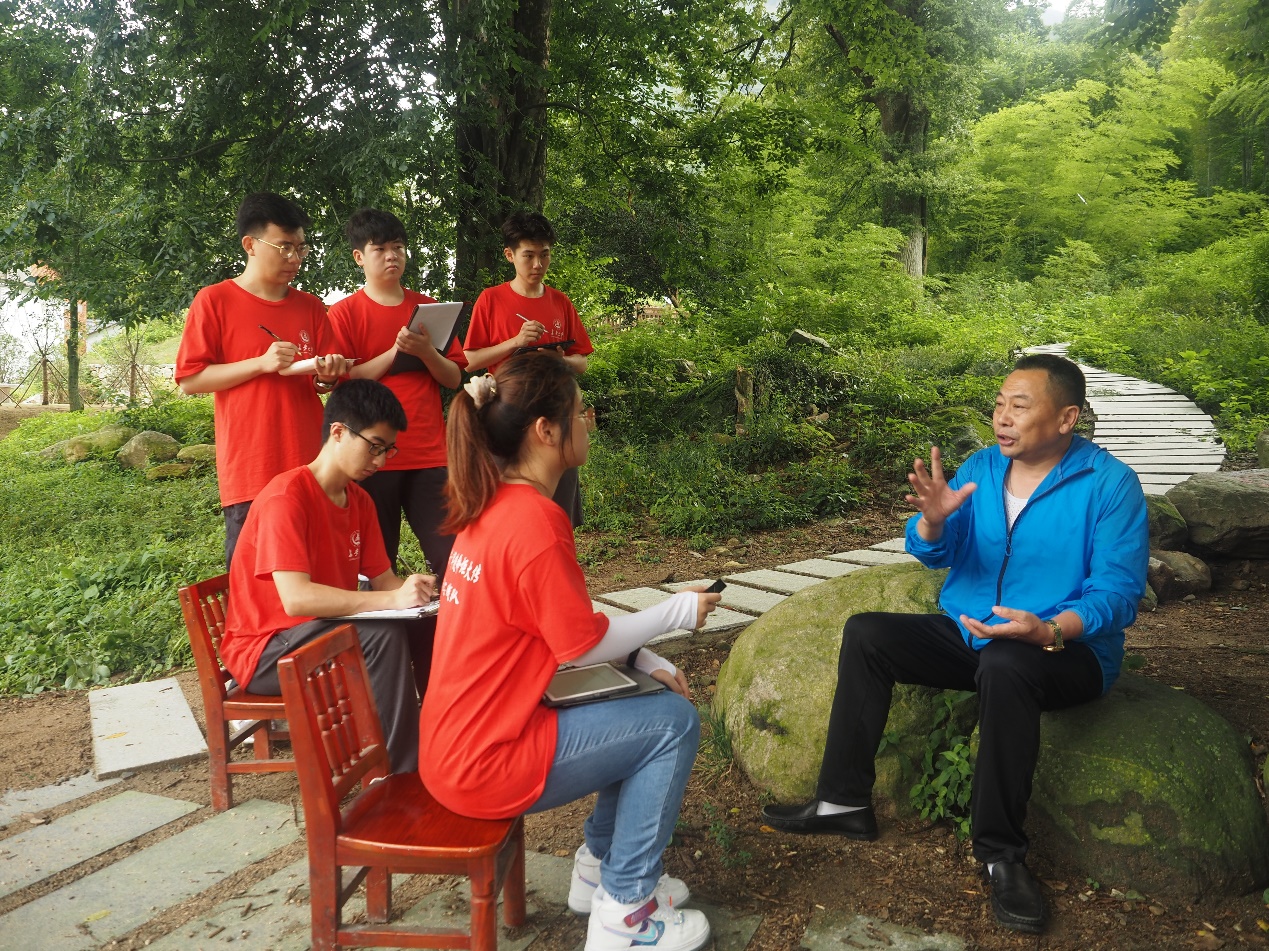 On July 27, in order to gain insight into the rural revitalization plan of Jinzhai County, the practice team interviewed Ge Jing, the propagandist in charge of the industrial development of Dawan Village, and Wang Xiaowei, the mayor of Guoziyuan Township, Jinzhai County. The team members learned about the specific situation and the focus of future development of local tourism, cultural and industrial revitalization. Ge Jing pointed out that Dawan Village has been lifted out of poverty and the development of various industries has begun to take shape. Next, under the guidance of the government, the village will further promote product marketing and product culture and create brand effects.