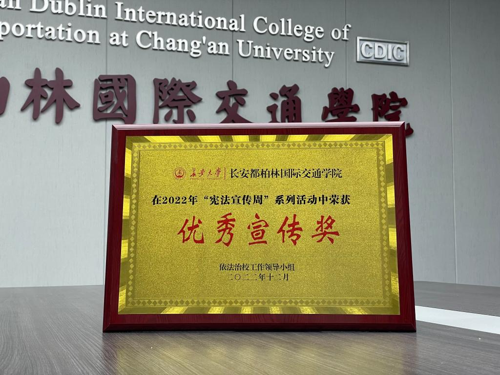 Recently, Chang 'an University's leading group of "Governing the University According to Law" announced the award list of the university's 2022 "Constitution Publicity Week" series activities, and CDIC won the "Excellent Publicity Award".
