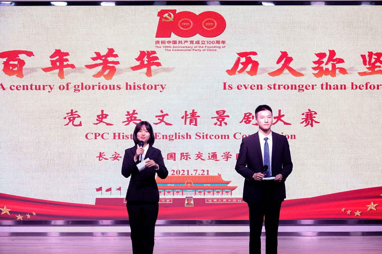 在鸿远教学楼四楼报告厅举办 “百年芳华历久弥坚”党史英文情景剧大赛。校党委宣传部常务副部长郗波,校党史学习教育第二指导工作小组成员张英,学院党总支书记、院长汪海年,党总支副书记、副院长姚以亮,浸入式英语夏令营特聘顾问李光咸以及夏令营外籍教师代表Christie出席并担任比赛评委。来自学院12个班级的100余名学生参加了本次比赛。