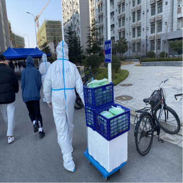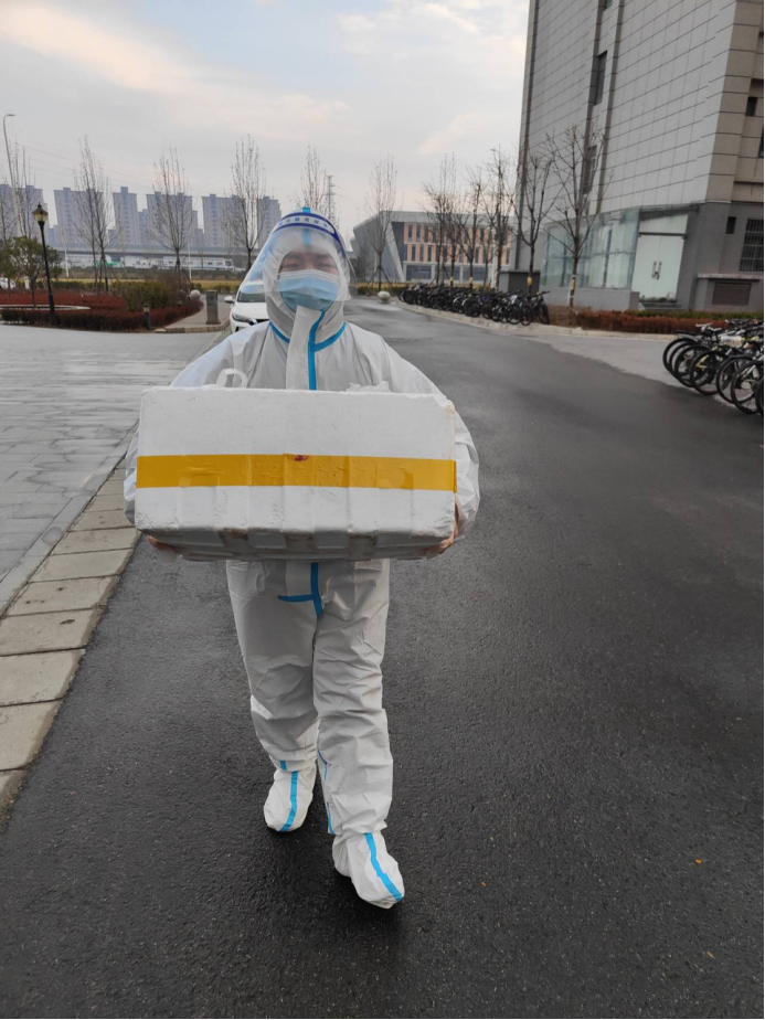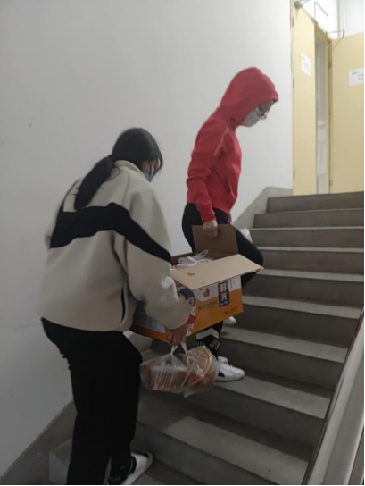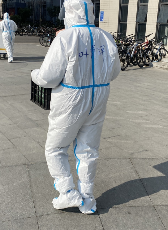 叶甜伊:我是20号楼2楼的层长,负责安排早中晚三餐配送、物资配送和收垃圾的志愿者,同时负责二层所有同学的核酸检测工作。