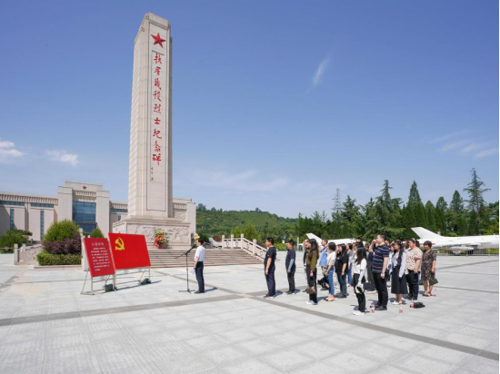在扶眉战役烈士纪念碑前,全体人员整装脱帽、整齐列队举行了缅怀仪式。仪式在庄严的国歌声中拉开序幕,全体人员向扶眉战役革命烈士静默致哀、鞠躬致敬并敬献花篮,共同追思革命先烈英勇事迹,深切表达对先烈们的沉痛哀悼和崇高敬意。随后,学院党总支书记赵亮带领全体党员重温了入党誓词。