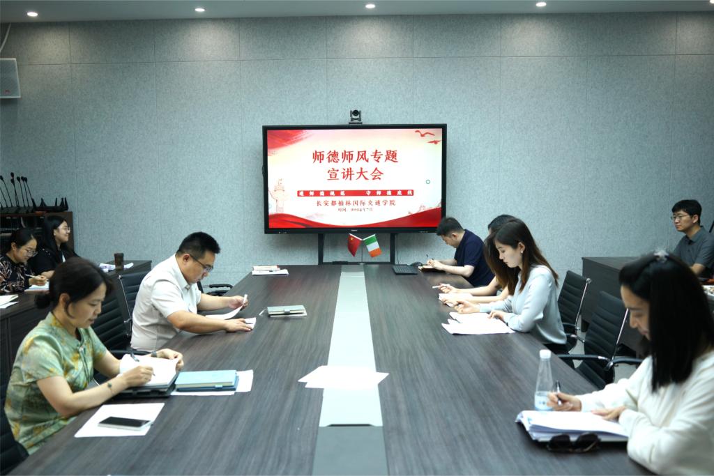 为进一步强化师德师风建设,引导青年教职工坚定理想信念、涵养高尚师德,7月11日上午,学院召开师德师风专题宣讲会议。会议由院长张久鹏主持,副书记张艳萍、副院长贺燕飞、学院青年教职工和新入职教职工参会学习。