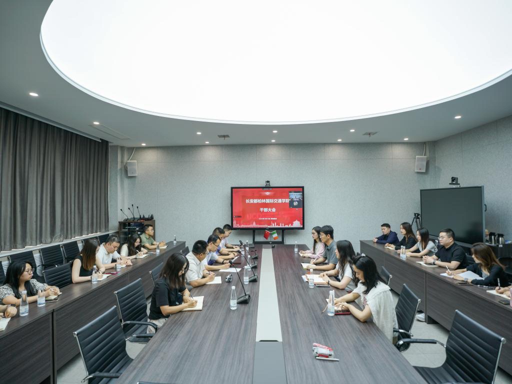 在鸿远教学楼四层会议室召开干部大会,宣布学校党委关于学院领导干部任免的决定。会议由院长张久鹏主持,学院领导班子与全体教职工参加会议。