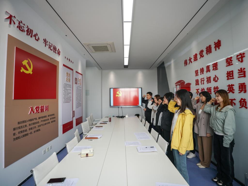 与会人员面向鲜红的党旗整齐列队,高举右拳重温入党誓词,“我志愿加入中国共产党……”的铿锵誓言回荡现场,进一步坚定了党员干部为高等教育事业奋斗终身的信念。