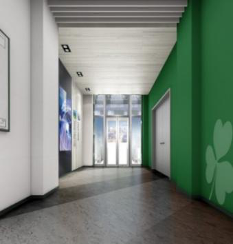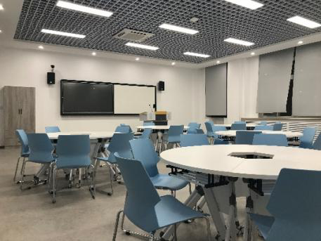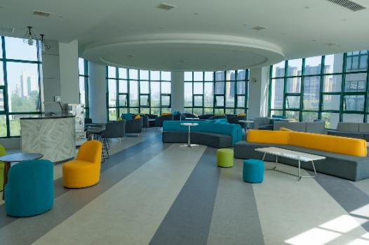 学院规划智能化教室、高速网络计算机室、报告厅、自习室、讨论室、网络面试间等教学空间50处,办公空间12处,公共活动区域7处,为国际化人才培养提供功能多样、设施齐全的教学办公空间。教学及办公场地以中国红和爱尔兰国旗颜色绿、白、橘为装饰主色调、爱尔兰国花三叶草为主要装饰图案,充分展示中爱双方文化内涵,凸显国际化办学风格。