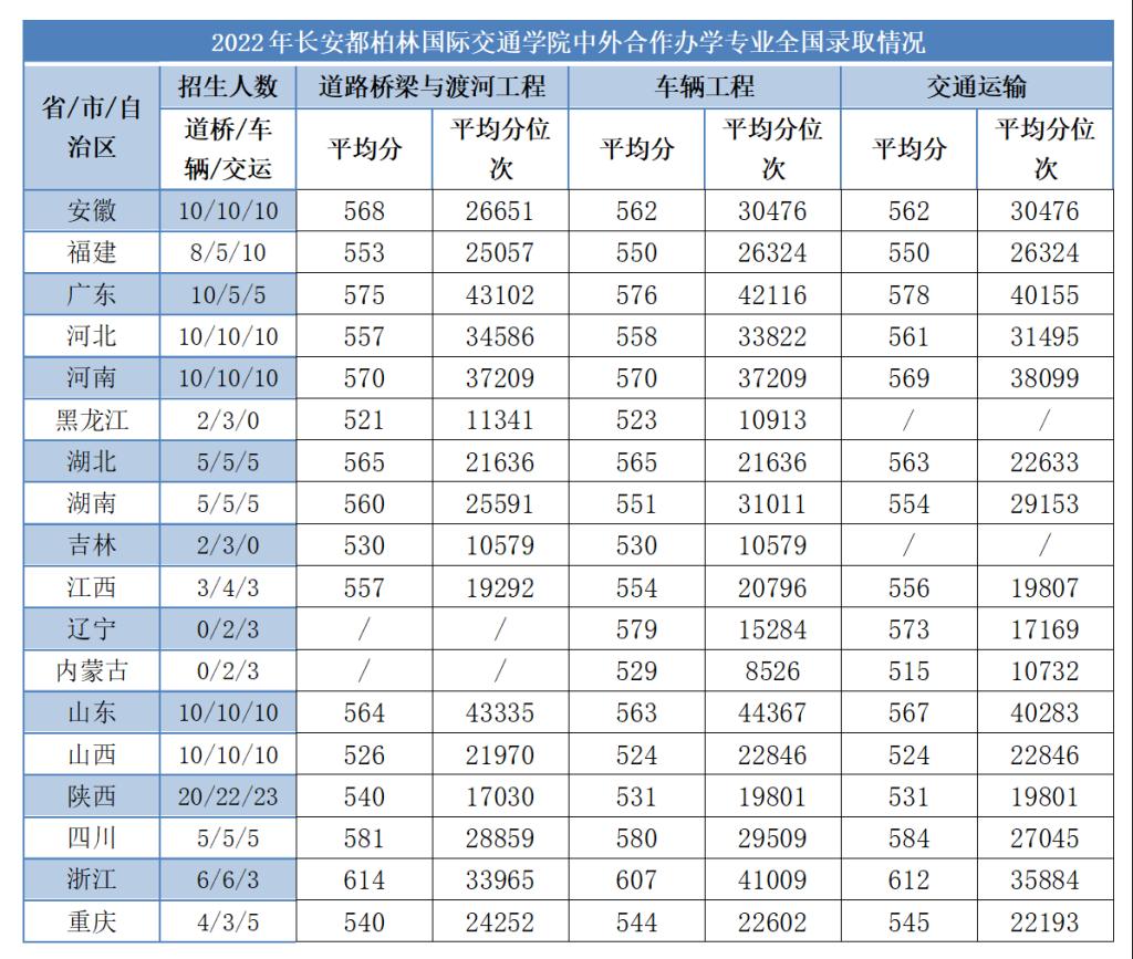 2022年雷火电竞 中外合作办学专业全国录取情况