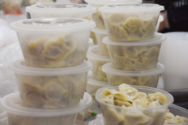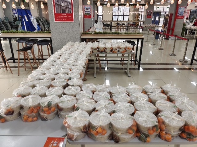 天近拂晓,为让同学们尽早吃上香喷喷的水饺,志愿者们快步流星,加快送餐速度,将这份温暖及时“护送”。