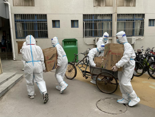 天还未亮,他们已早早带着同学们的早饭前往宿舍进行分发
