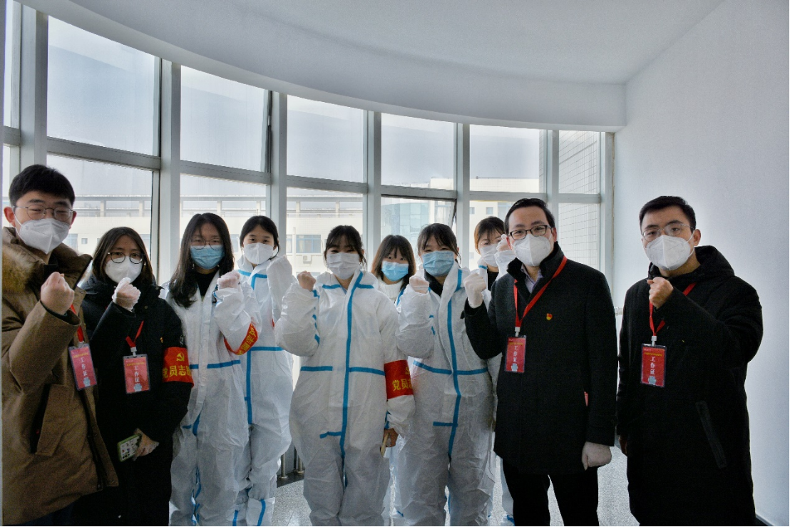 党总支副书记、副院长姚以亮一行代表学院党总支看望慰问了奋战一线的新生志愿者们,为他们送去了节日的关怀,坚定了抗疫必胜的信心决心。学生事务部孙士强、张力雄、曾妍以及学生党员代表参加活动。
