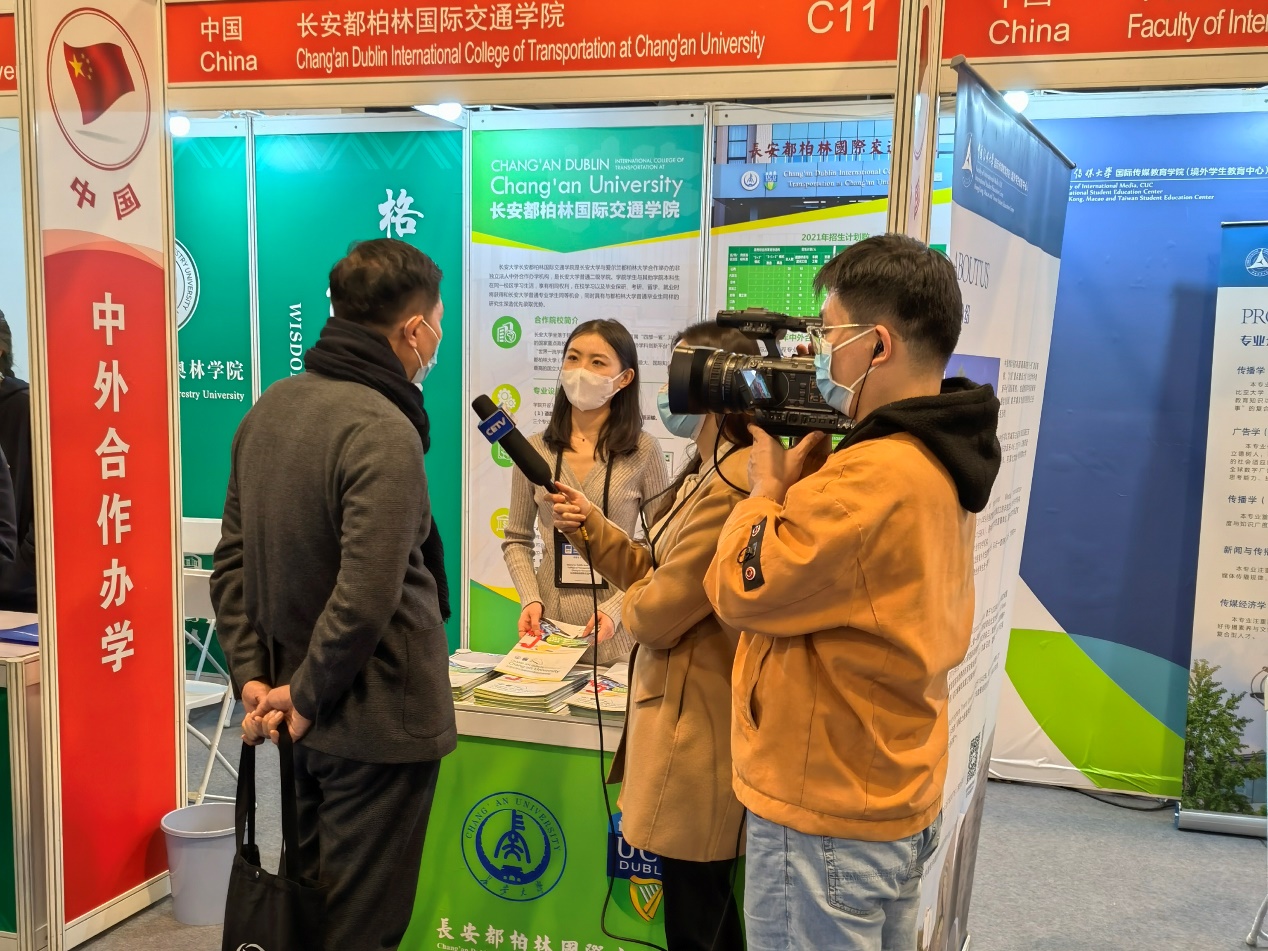 展会现场,学院展区人气旺盛,吸引中国教育电视台记者前来采访。学院老师向记者详细介绍了学院基本情况、报考条件等,细心为家长答疑解惑,就招生政策、报考指引等问题进行了详细解答。现场“共话留学”主题讨论区还推出了一场中外合作办学主题分享会,为学生和家长提供资讯交流平台。