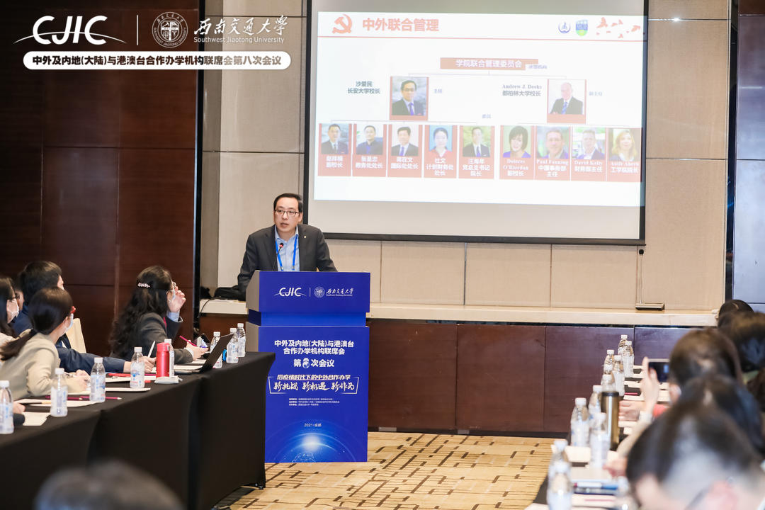 2021年10月17日至19日,中外合作办学联席会第八次会议在成都西南交通大学隆重召开。教育部国际司副司长闫炳辰,沈阳大学校长、联席会秘书长赵彦志,四川省教育厅副厅长陈朝先莅临指导,来自全国百家中外合作办学机构的300多位代表参会。本次会议以“新挑战,新机遇,新作为”为主题,旨在共同推动后疫情时代下的中外合作办学发展,以更大力度的创新举措深化教育对外开放,同世界一流资源开展高水平合作办学。雷火电竞