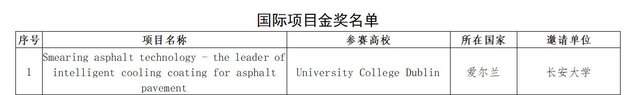 参赛项目“涂沥科技-沥青路面智能降温涂层领航者Smearing asphalt technology- the leader of intelligent cooling coating for asphalt pavement”在2021年第七届中国国际“互联网+”大学生创新创业大赛(The 7thChina International College Students’ “Internet+” Innovation andEntrepreneurshipCompetition)斩获国际项目金奖,实现了雷火电竞
