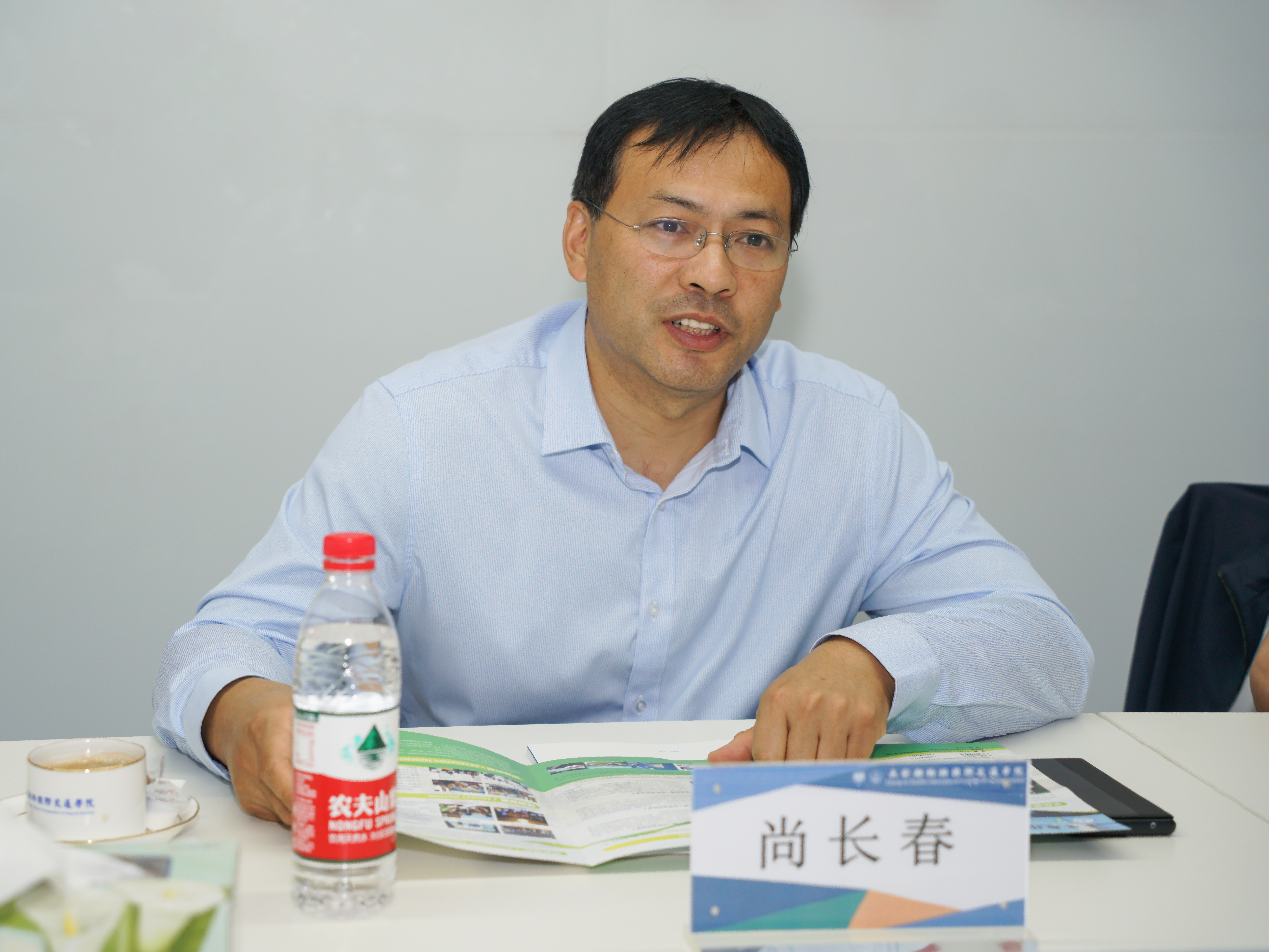 在学院领导的陪同下,尚长春参观了学术报告厅、多媒体互动教室和国际交流中心等教学办公空间,深入考察国际化人才培养设施条件。随后,双方在学院五楼会议室开展座谈会,座谈会由汪海年主持。