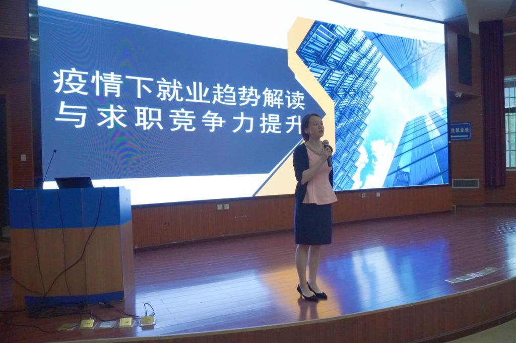 与招生就业处于北校区图书馆西侧裙楼就业报告厅共同举办“生涯•长大——长大职播间”专题讲座,邀请新东方前途出国助理副总裁、就业力项目推广中心总监齐彬老师做题为“疫情下就业趋势解读与求职竞争力提升”的讲座,来自各院系的200余名学生到场聆听。学院党总支副书记、副院长姚以亮,新东方前途出国助理副总裁、陕西新东方前途出国总经理卢一航,陕西分公司市场总监谷玮,招生就业处就业指导教研室主任赵裕民出席了本次活动。活动由学院学生事务部副主任孙士强主持。
