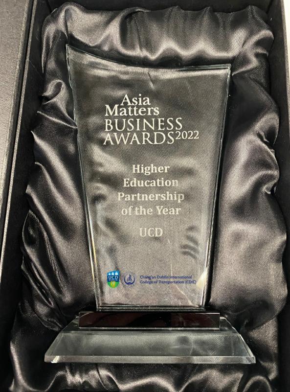 在爱尔兰与中国实施中外合作办学的98个项目(机构)中脱颖而出,获2022年度最佳高等教育合作伙伴奖。