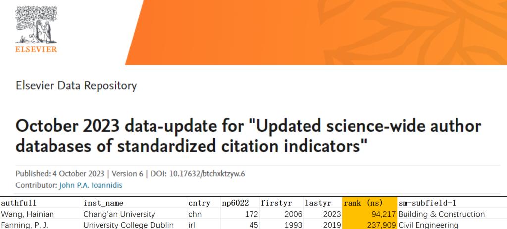 院长汪海年、教务长Paul Fanning入选2023“全球前2%顶尖科学家”。