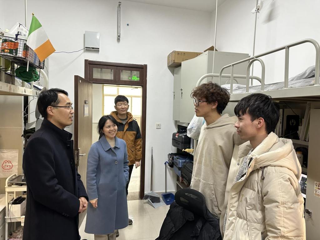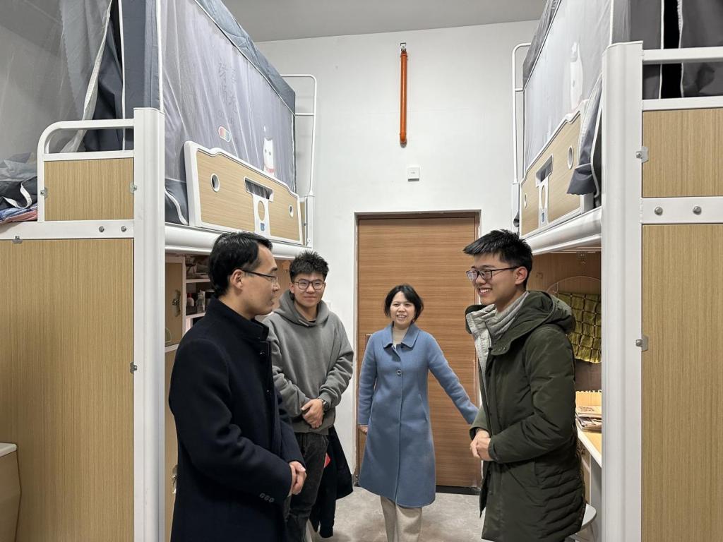 在走访过程中,领导老师与同学们亲切交流,询问同学们的假期生活、返校适应情况和新学期计划,提醒同学们尽快调整状态,积极适应节奏,以饱满的精神状态投入到学习科研a当中去。领导老师们仔细排查宿舍安全隐患,叮嘱同学们特别注意宿舍安全,严格遵守校规校纪,提升安全意识,不使用违规电器;养成良好的生活习惯,营造整洁文明的宿舍环境和团结进取的宿舍氛围。