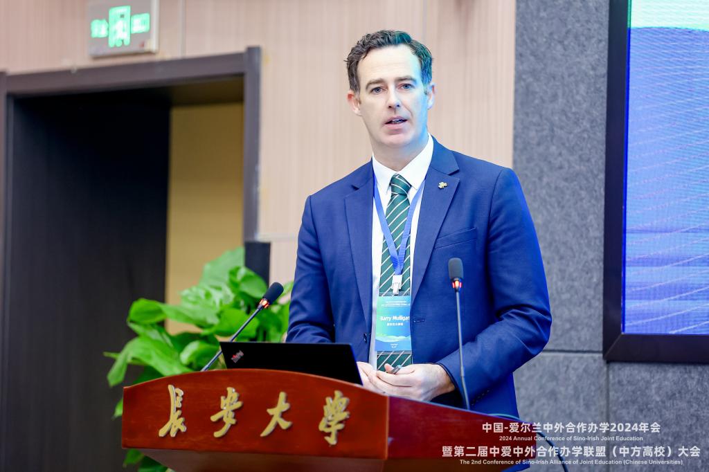 Barry Mulligan表示,爱尔兰政府高度重视与中国的教育交流,未来会继续支持中爱两国文化交流与高等教育的发展。他希望通过本次大会的深入交流和探讨,能够进一步拓展中爱教育合作的领域、深化中爱合作办学层次、探索创新联合培养模式,推动两国教育合作事业不断迈上新的台阶。