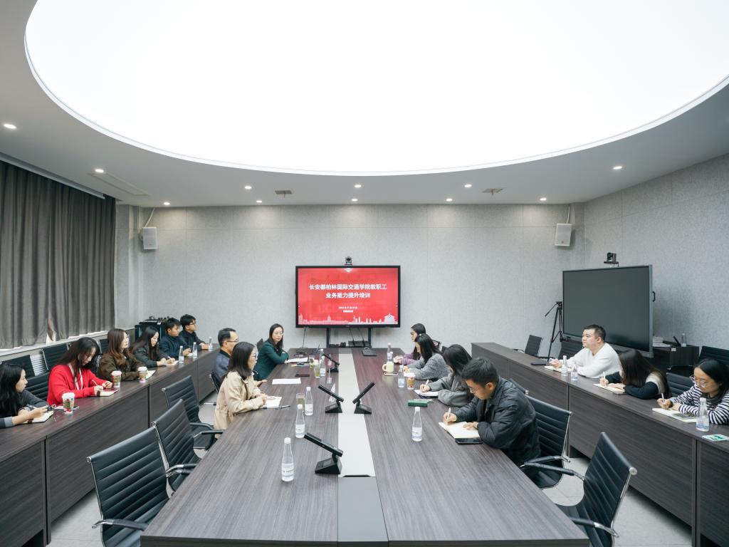 在四楼会议室举办教职工业务能力提升培训班。本次培训活动特邀党办副主任刘艳艳、校办副主任朱先前和党委宣传部和燕做专题讲座。学院党总支书记赵亮、全体教职工参加培训会,会议由副院长贺燕飞主持。