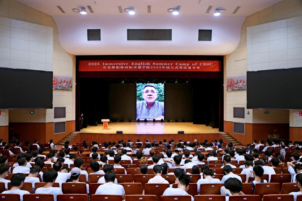 学院教务长Paul Fanning通过视频致辞。他表示,在全球化背景下,熟练掌握英语语言对于学生未来发展具有强大优势。他强调,语言学习的关键在于不懈练习,鼓励学生充分把握此次夏令营提供的全英文学习环境,通过实战交流锤炼语言技能,不断提升自身英语水平。最后,他寄望青年学子珍惜当下,拥抱机遇,收获成长。