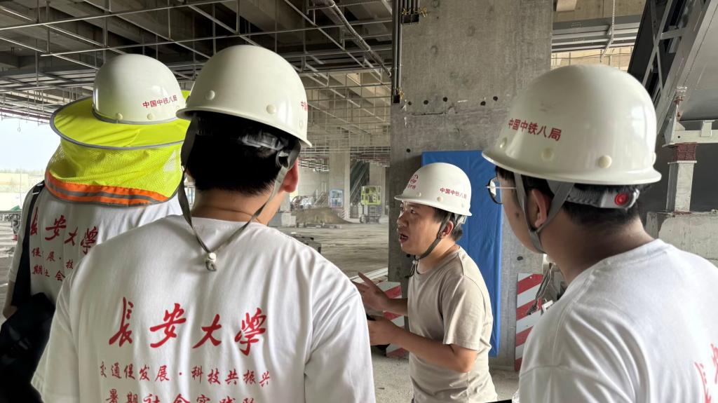 7月18日实践队赴南京江宁滨江开发区,调研滨江地铁站建设,学习南京段客流预测模型与智慧化管理经验。与江宁区交通局、中咨设计公司交流区域协同发展路径。孙建带领实践队员围绕宁马城际项目背景、特色车站规划、交通流模型预测以及配套基础设施建设等情况展开交流研讨,并就健全校地合作机制,着力推进合作成果转化,助力当地交通事业高质量发展展开交流。