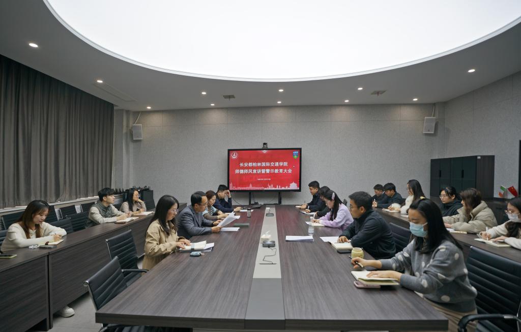 12月18日下午,雷火电竞 于鸿远教学楼四楼会议室召开了师德师风宣讲暨警示教育大会。学院领导班子及全体教职工参加会议。会议由副院长贺燕飞主持。