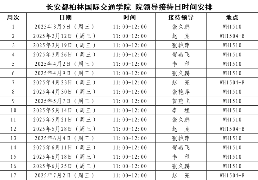 为广泛听取师生员工对学院各项工作的意见和建议,促进学院建设与发展,结合现阶段学院工作实际,现将本学期院领导接待日安排通知如下: