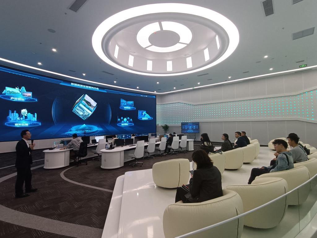 在陕西大秦元时代数字信息技术有限公司负责人的带领下,同学们参观了高新区的沉浸式展厅。展厅内部采用了裸眼3D等最新的沉浸式技术,使学生团队仿佛置身于一个数字构建的世界中。通过高清大屏、地面投影以及环绕式音响系统等设备,展厅将高新区的发展成果、数字技术应用以及未来规划等内容以生动、直观的方式呈现出来。在这里,团队近距离观察数字技术的神奇魅力,感受数字经济为城市治理、产业发展和经济运行带来的深刻变革。