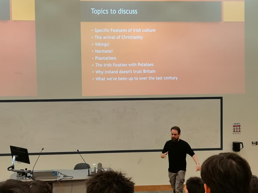 UCD夏令营主办方还邀请到 Aidan O’Reilly教授开展关于爱尔兰历史的讲座。O’Reilly教授以生动活跃的方式讲述了爱尔兰走向独立的历史进程,并与同时期中国历史相结合,使同学们对历史的变迁及所在土地的厚重感有了更深层次的理解。
