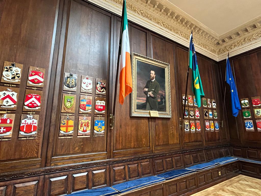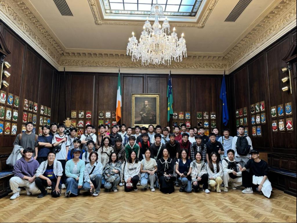 7月31日,参营学生受邀参观了都柏林市长府邸,体验了一次难忘的文化之旅。在爱尔兰首都都柏林,市长府邸不仅是政治活动的中心,更是这座城市文化与历史的缩影,见证了都柏林的发展与变迁。在这座充满故事的府邸,市长James Geoghegan先生身着传统爱尔兰服饰,亲切接待了前来参观的同学们,并介绍了市长府邸的历史以及它在爱尔兰历史中的重要地位。