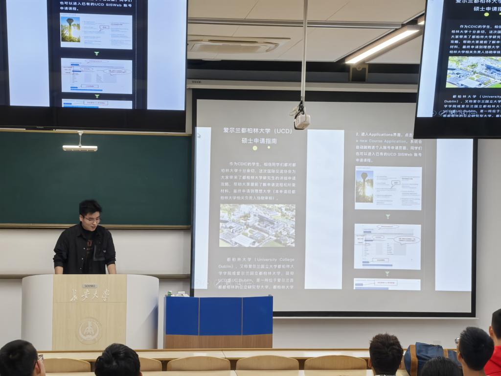 活动伊始,杜二静向同学们介绍了出国留学前在大学不同阶段所需做出的准备。她详细分析了在美国、英国、德国、澳大利亚和香港等地区留学的优势与劣势,帮助同学们清晰地确定未来留学规划的方向。随后,她根据同学们的提问,解答了有关各国饮食和风俗等方面的问题,帮助同学们全面了解海外留学生活。