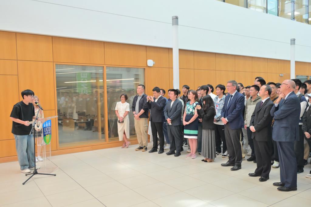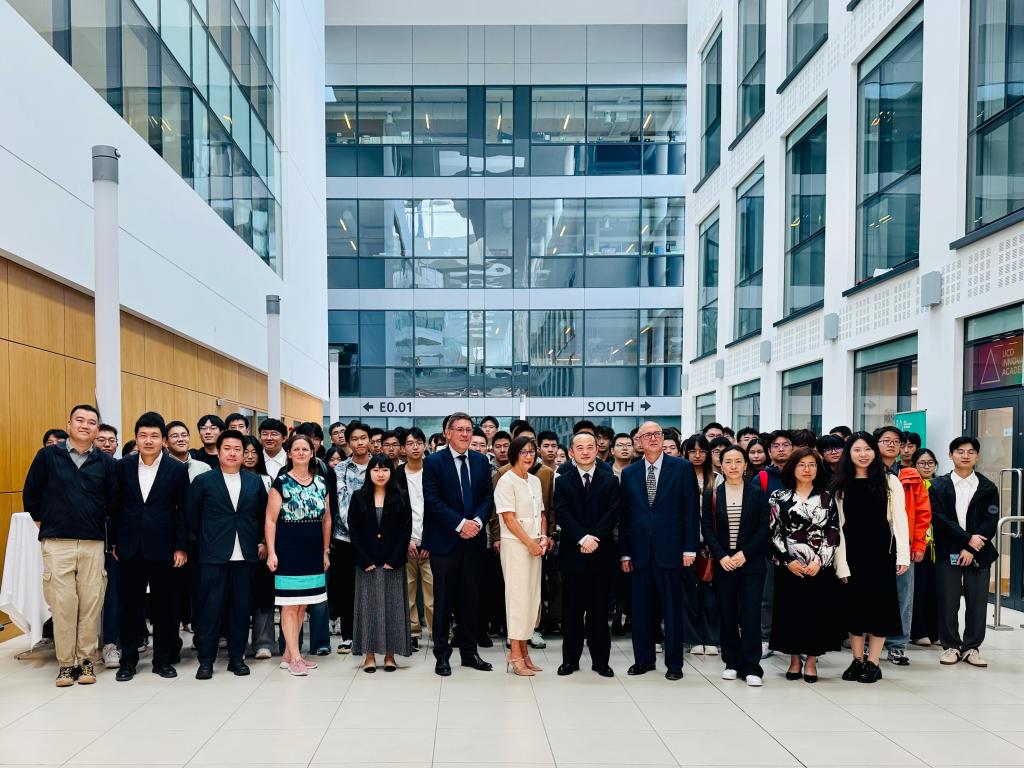 与中国高校在合作办学方面长期保持紧密联系,取得丰硕成果。他鼓励在场中国学生珍惜此次赴爱学习交流的机会,深入了解爱尔兰文化与社会,积极传播中国声音,成为促进交流、增进理解、推动和平与发展的桥梁和纽带。
