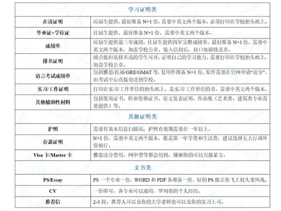 OK!让我们一起看看赴美攻读硕士研究生(Mater Degree)的必备材料都有哪些吧: