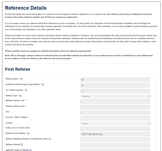 接下来是推荐人的填写(两位),分别填写:第一、第二推荐人的基本信息。