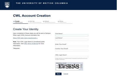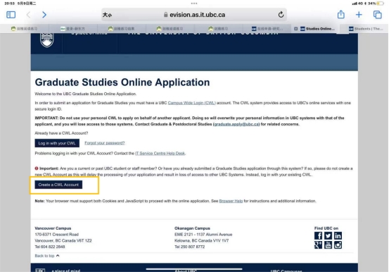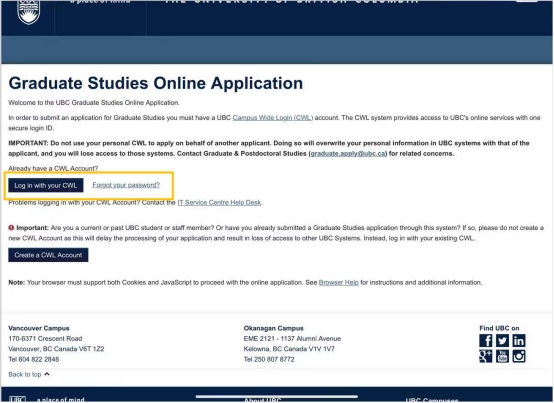 第一步,需要同学们点击下方的Create a CWL Account,注册一个CWL账号,进行网上申请。