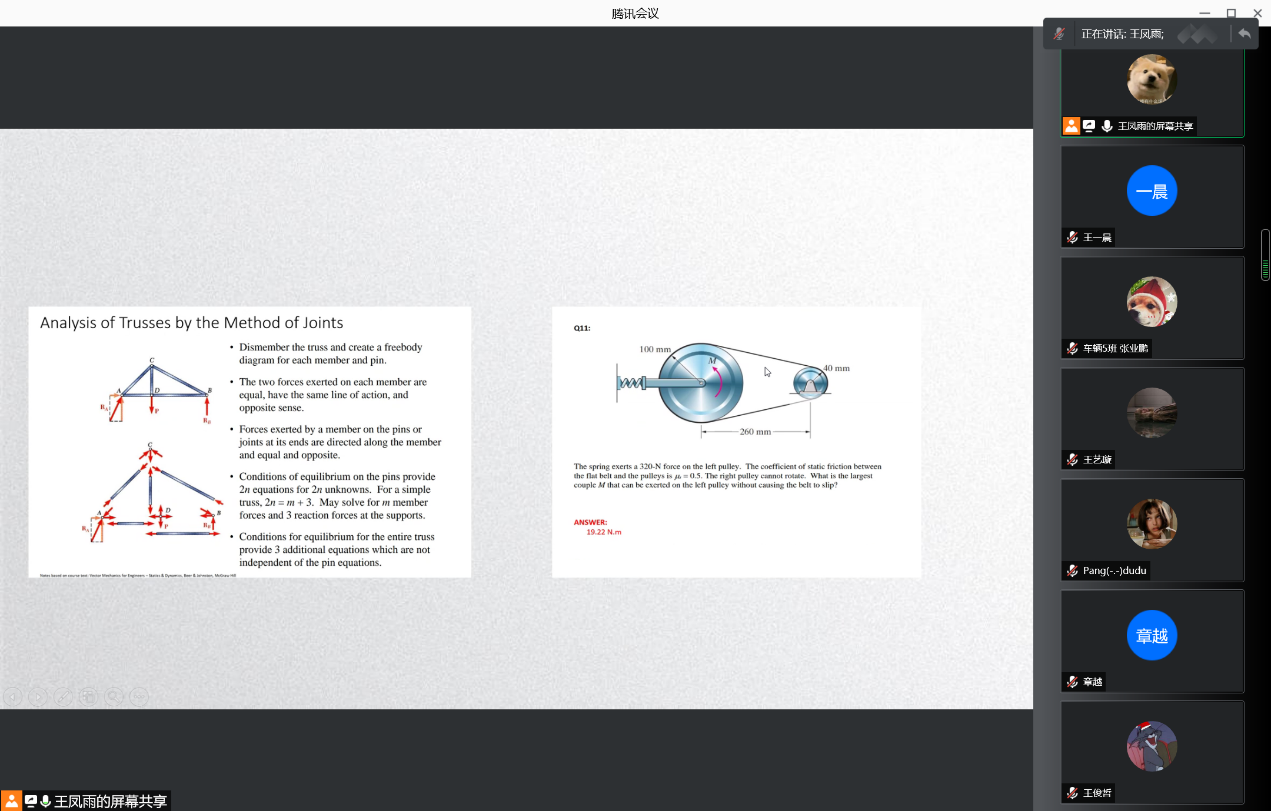 王凤雨同学结合相关课程要求,从例题入手,深入浅出地分析了每门课的学习思路与方法。同时,王凤雨同学强调,要想在考试中取得好成绩,不仅要好好复习,在平时也要把实验和小组作业做好。