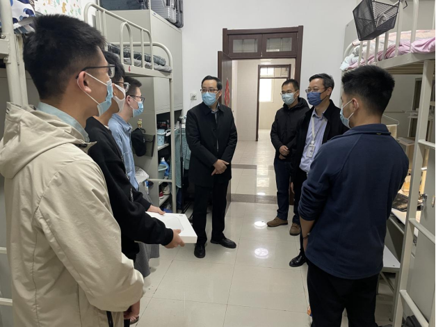 3月17日中午,学院党总支书记、院长汪海年,副书记、副院长姚以亮前往学生宿舍看望慰问各年级学生,重点了解了在校园封闭管理期间同学们的学习生活情况,各年级辅导员一同前往。