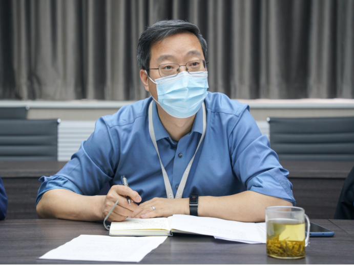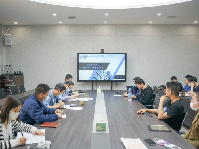 于鸿远教学楼四楼会议室召开2022届毕业生就业工作推进座谈会,学院党总支书记、院长汪海年,党总支副书记、副院长姚以亮,副院长柏强,学生事务部副主任孙士强,2018级辅导员曾妍,以及部分学生代表参加座谈会。