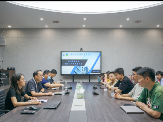 于鸿远教学楼四楼会议室召开2022届为就业学生座谈会,学院党总支书记、院长汪海年,党总支副书记、副院长姚以亮,学生事务部主任孙士强,2018级辅导员曾妍,以及2022届未就业学生参加座谈会。