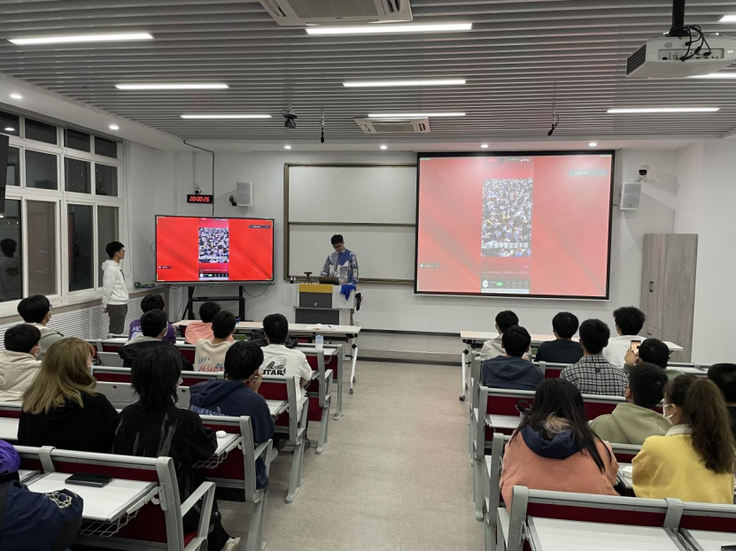 在主题团日活动环节,同学们观看了英文讲解视频《党的二十大为什么如此重要?》,从外国友人的视角感悟大会的重要历史意义。随后,周骏杰领学了党的二十大报告,点燃了同学们为祖国建设添砖加瓦的拳拳热忱。学习结束后,同学们踊跃发表自己的心得体会。