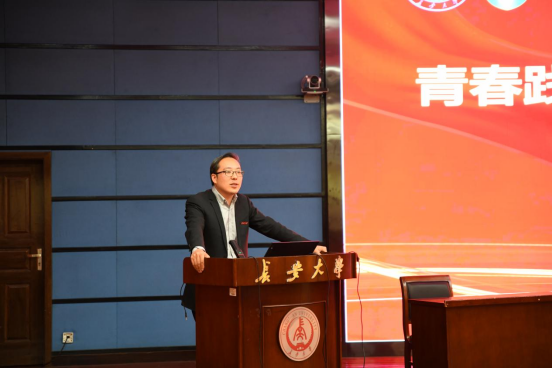 姚以亮强调了榜样力量进院系活动的重要意义,并对“长大之星”宣讲团成员的到来表示热烈的欢迎和衷心的感谢。他表示,优秀是一种习惯,榜样是一种力量,希望同学们在对照提升中勇毅前行。当今世界正经历百年未有之大变局,同学们要尽早制定人生目标,善于思考、勇于创新,坚定雄心壮志,树立远大目标和分阶段的具体目标。同学们既要仰望星空,又要脚踏实地,路虽远,行则将至,要用行动和坚持实现人生目标。同学们在钻研学业之余,还要树立正确的人生观、世界观、价值观,培养情商、沟通技巧与团队合作能力,提升综合竞争力。最后,他向全体同学致以节日的问候和祝福,希望大家大力弘扬“五四”精神,乘风破浪扬帆远航,在星辰彼岸实现人生理想。