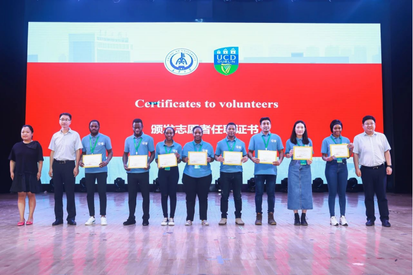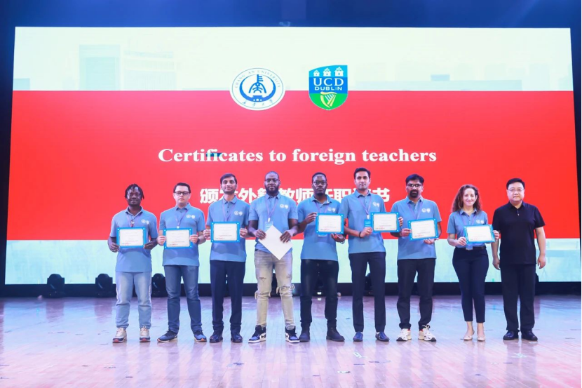 省教育厅对外合作交流处处长文通为参加夏令营的外籍教师代表颁发任职证书,学生工作部副部长赵建彬、国际合作与交流处副处长高炜、校团委副书记刘扬为国际学生志愿者代表颁发任职证书,雷火电竞