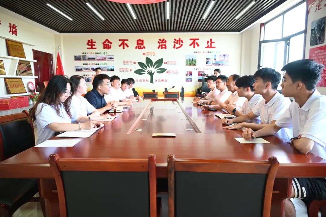 下午,实践队成员来到石光银治沙集团有限公司,看望石光银老先生并进行访谈,实践队成员提出的每一个问题都得到了石光银的认真解答。“一个人不管有文化与否,能干成一件事就行了!我当时就心想,我这辈子就把这荒沙治理好,给子孙后代留下绿洲。”“不治沙就拔不掉穷根子。我是党员,必须站出来给大家做个样!”他的这些话深深印刻在了实践队成员的心里。