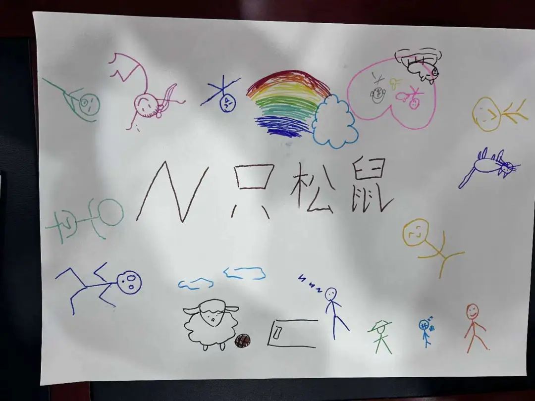 集体的凝聚,创立于成员互动的过程,体现在成员协作的成果。霍老师在上述环节的基础上,组织同学们在规定时间内,为集体绘制旗帜、确定名称,以此作为本次活动的总结。团队成员集思广益,最终创作了属于“N只松鼠”团队的旗帜,寓意着团队成员各有所长、在未来创造无限可能。