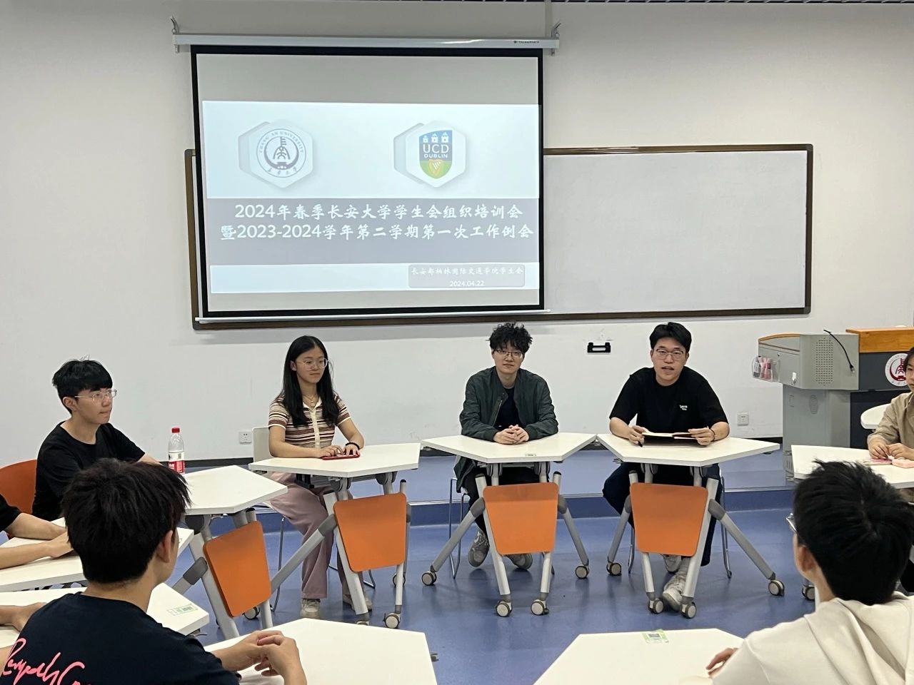 学生会于4月22日晚开展2024年春季学生会组织培训会暨本学期第二次工作例会。学生会指导老师庞媛,执行主席林骁扬、主席团成员杨欣怡、徐绍维,全体部门负责人参与本次会议,会议由林骁扬主持。