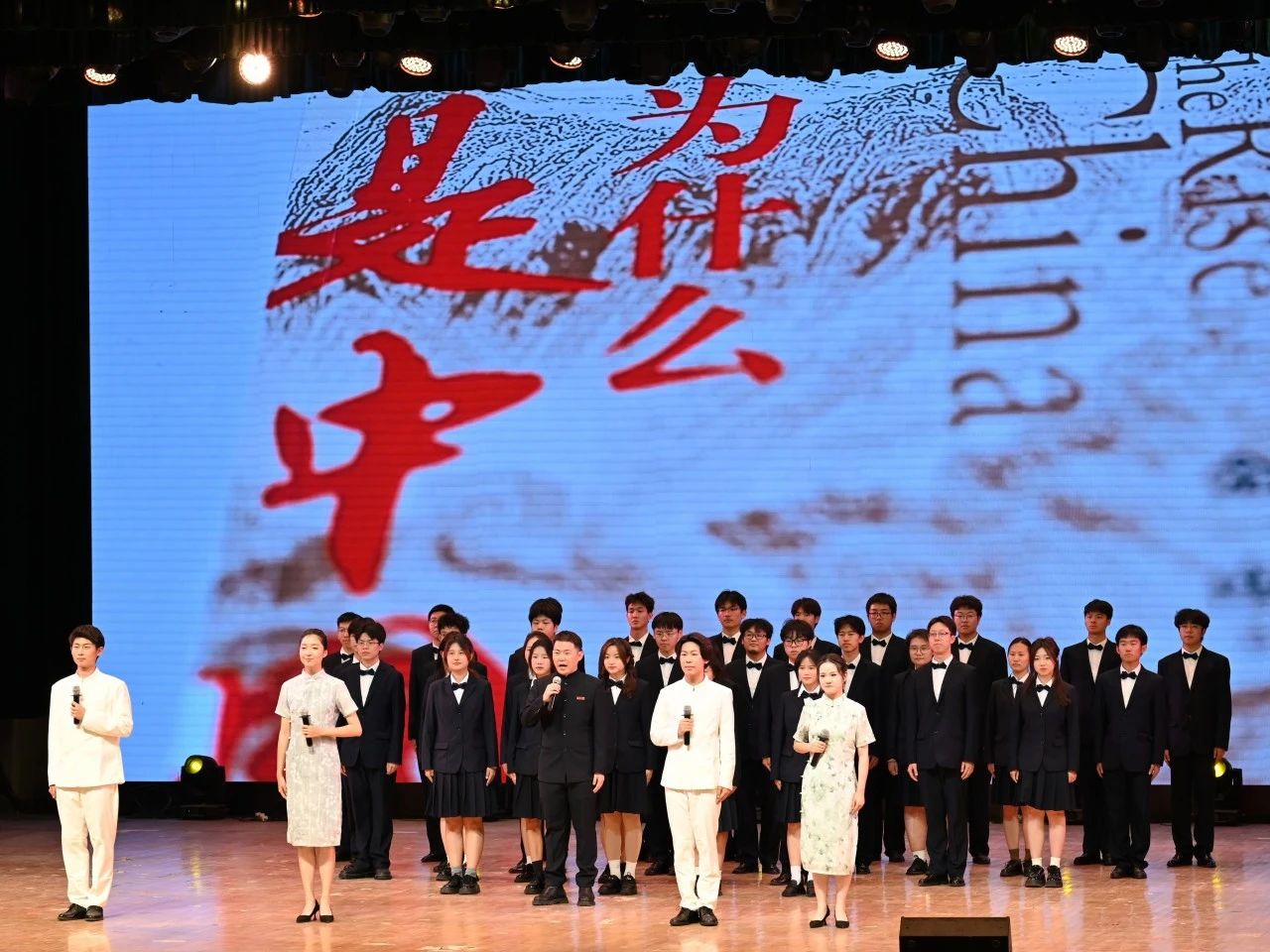 长安文化艺术中心大礼堂内,学院青马班同学以铿锵有力的声音、真挚动人的情感,诠释了真正的青春与传承。他们的诵读,仿佛穿越时空,引领观众重走英雄来路,映射出近代以来中华民族在伟大复兴道路上坚定不移、勇往直前的精神风貌。
