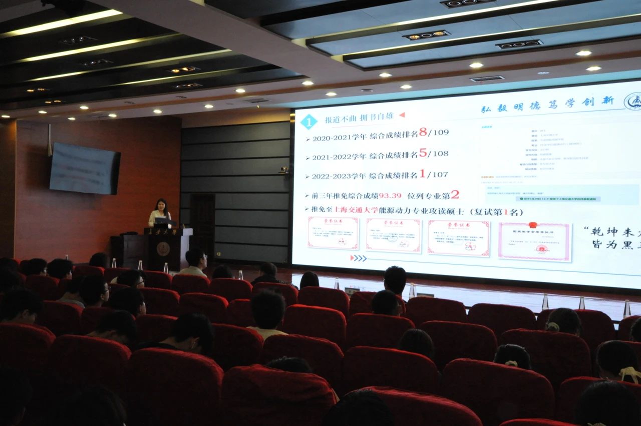 宣讲团成员毛卫昱、罗寓文、周傲然、张增志、张舒峻、曲冠楠分别围绕学业发展、团学工作、科创竞赛、留学规划、社会实践等方面进行分享。