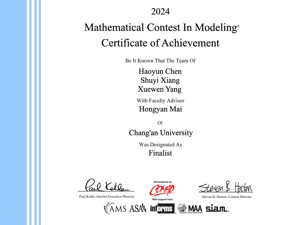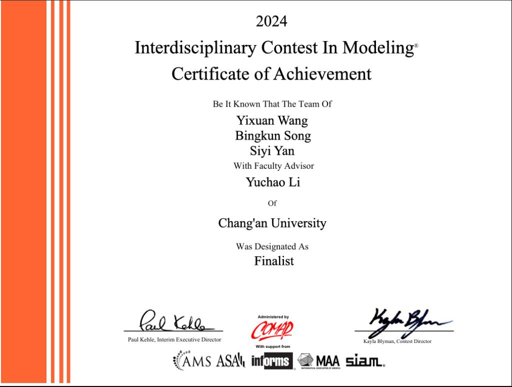 喜报:学院学生在2024年美国大学生数学建模竞赛中再获佳绩