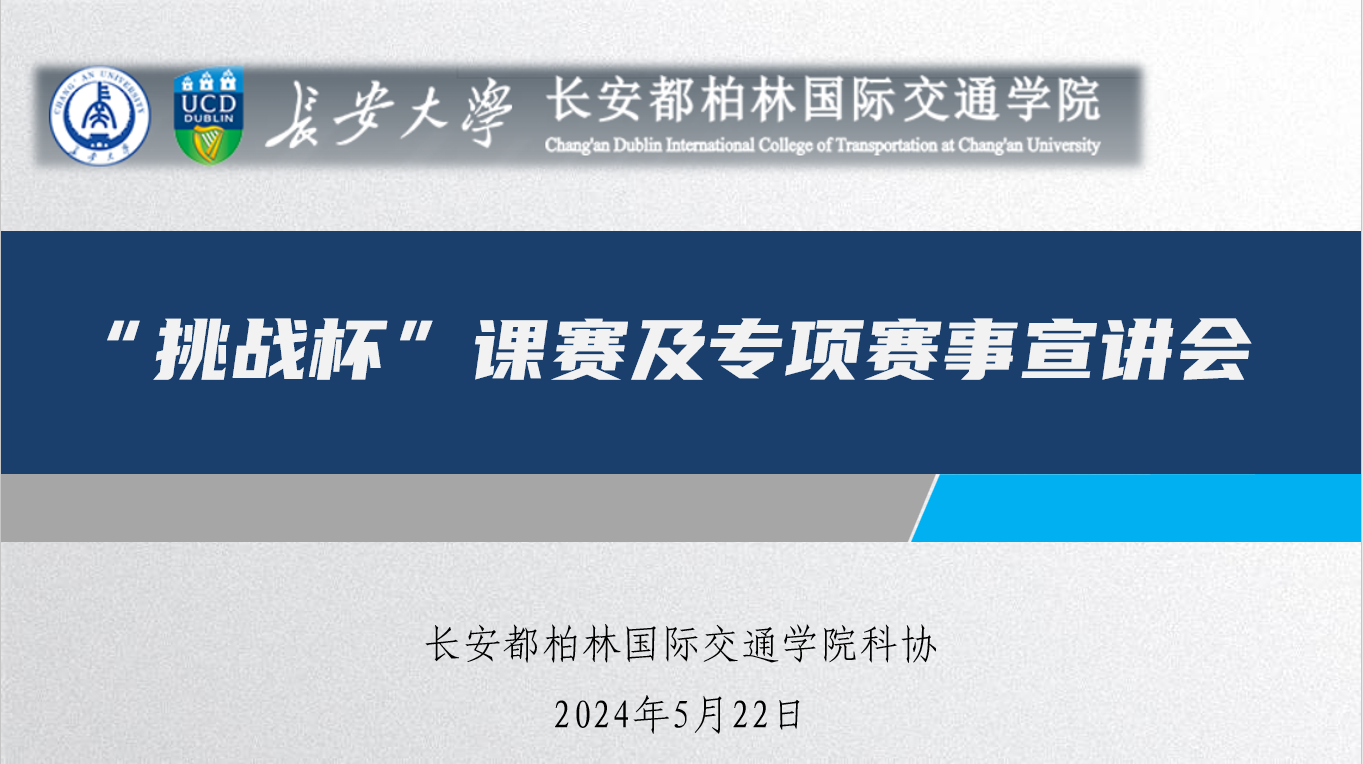 学生努力培养科学精神和科学态度,积极学习科学知识和科学方法,调动学生参赛热情,引导学生提前做好参赛准备,5月22日,长安都柏林国交交通学院在鸿远教学楼WH1406教室举办“挑战杯”课赛立项及专项赛事宣讲会。学院科协指导教师曹胡杨及科协主席团成员参与了此次活动。